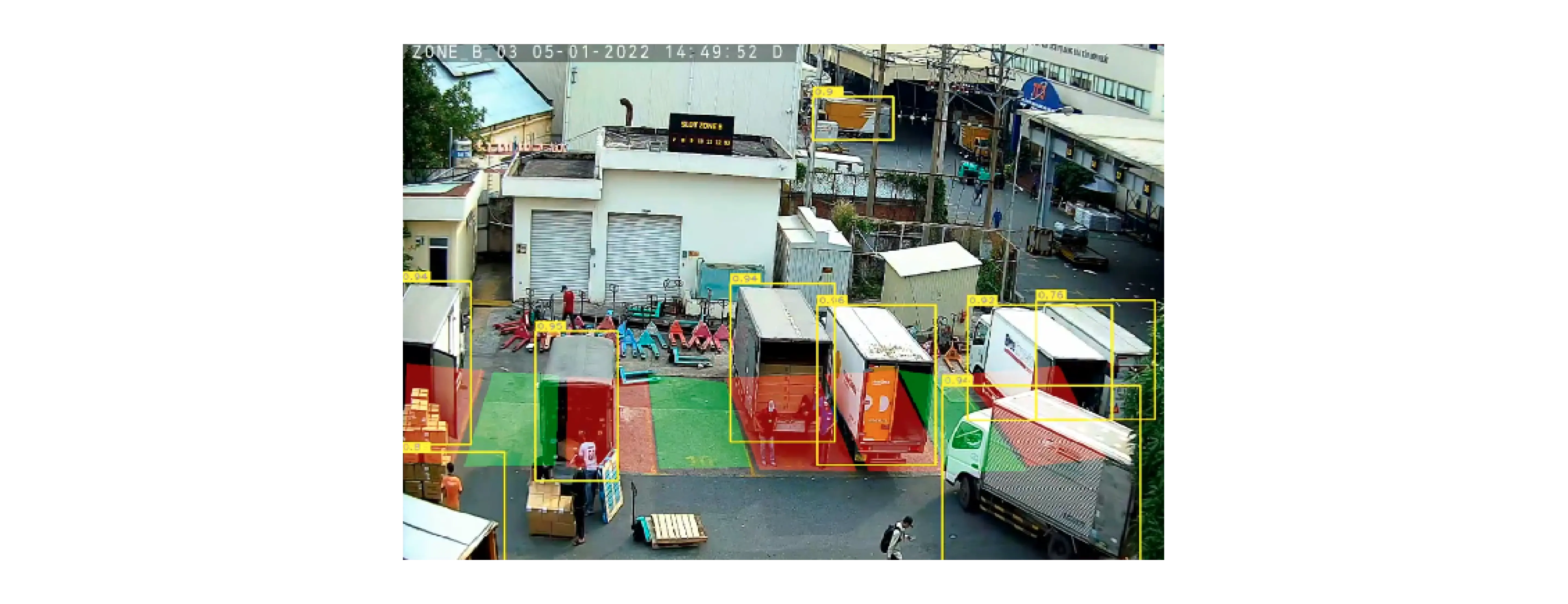 Giải pháp phát hiện chỗ trống trong bãi đỗ xe. Ứng dụng quản lý slot, cảnh báo khi slot có xe hoặc hàng hóa chiếm dụng.